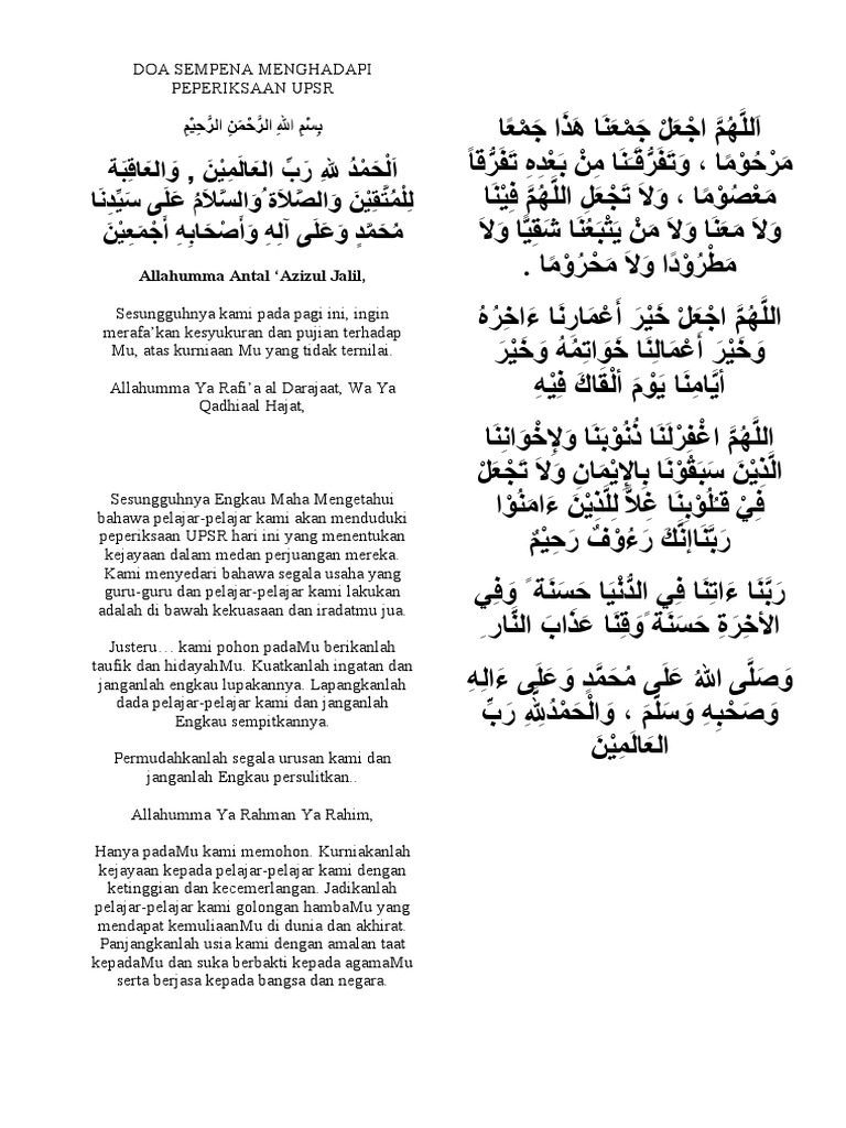 Doa Sempena Menghadapi Peperiksaan Upsr via www.scribd.com